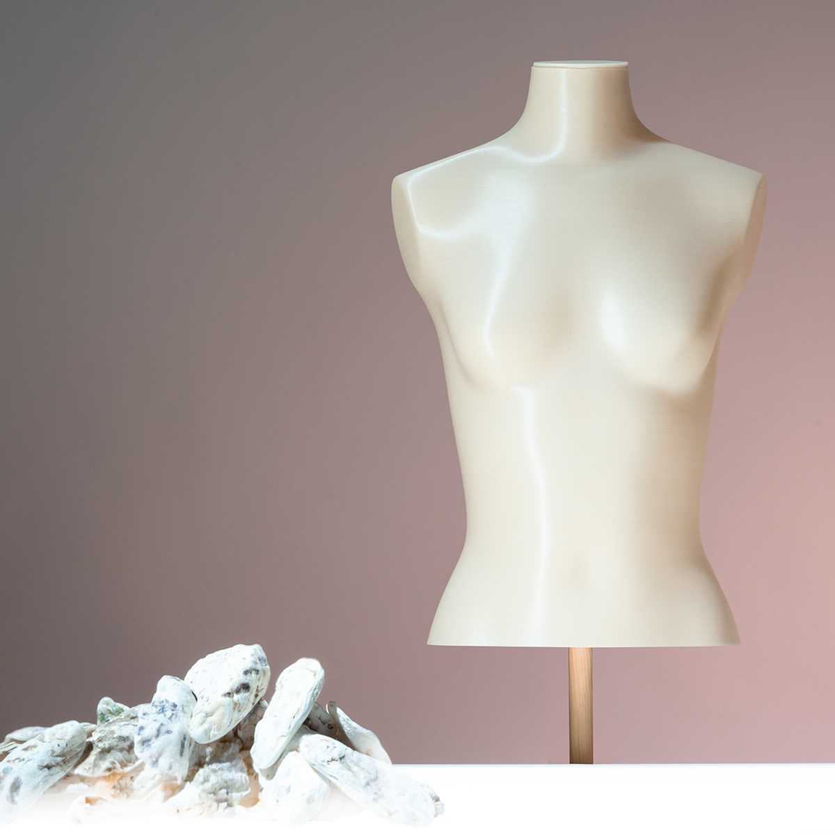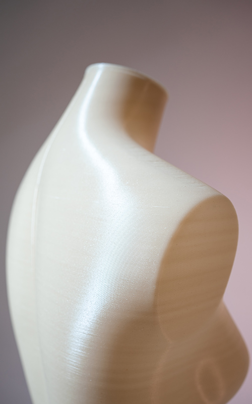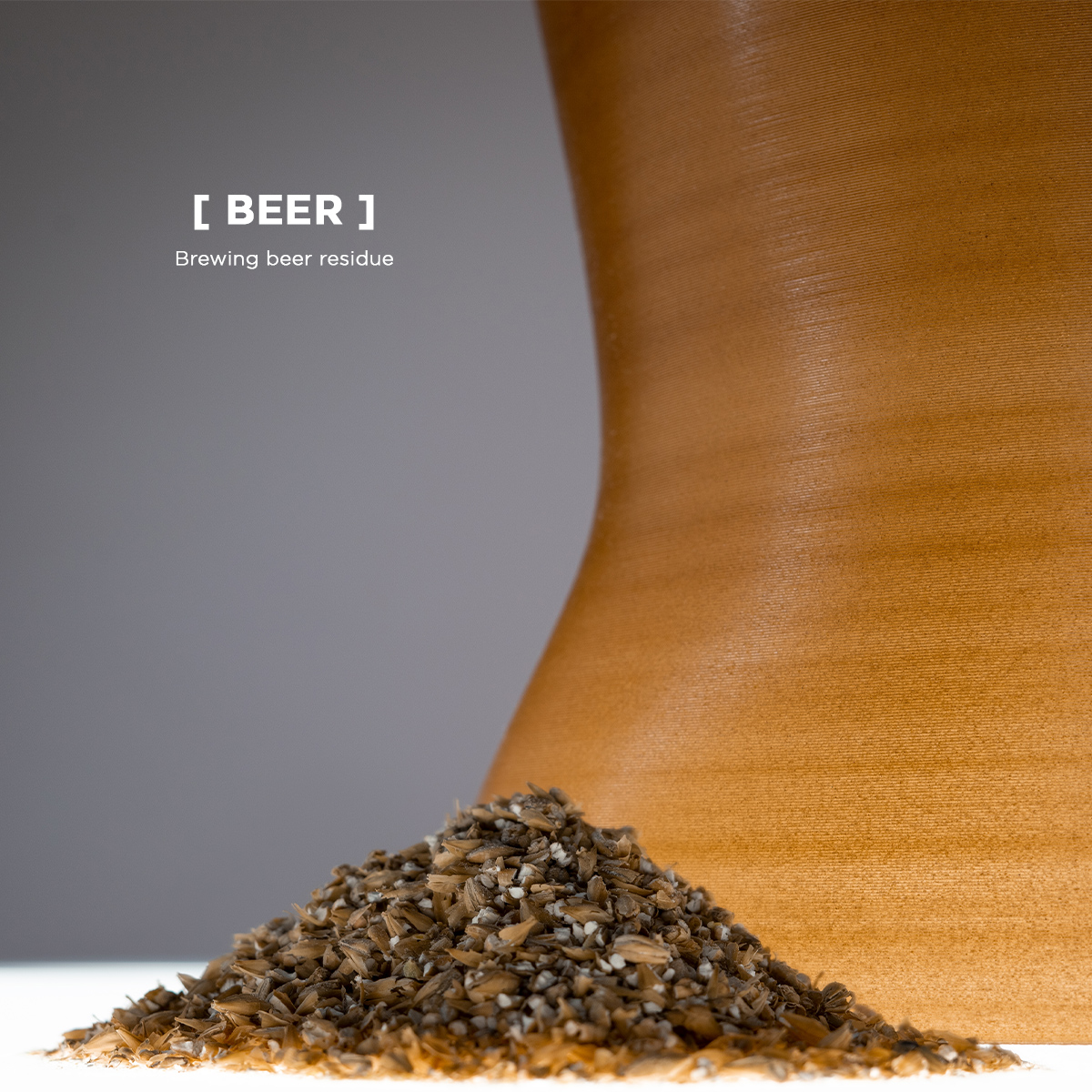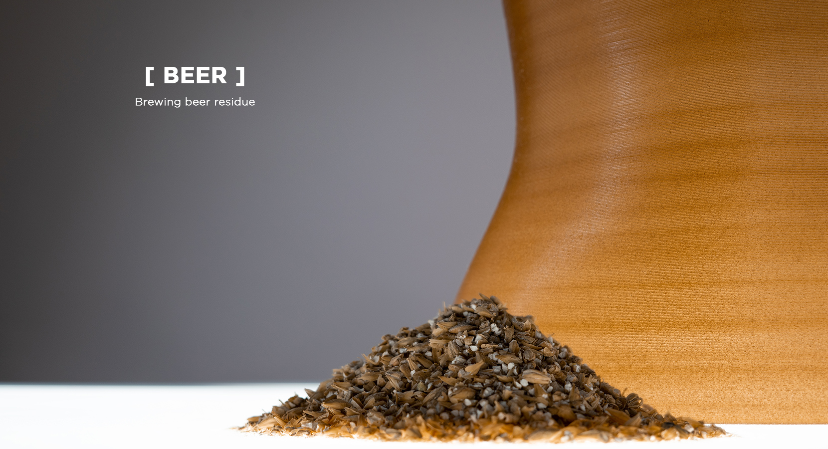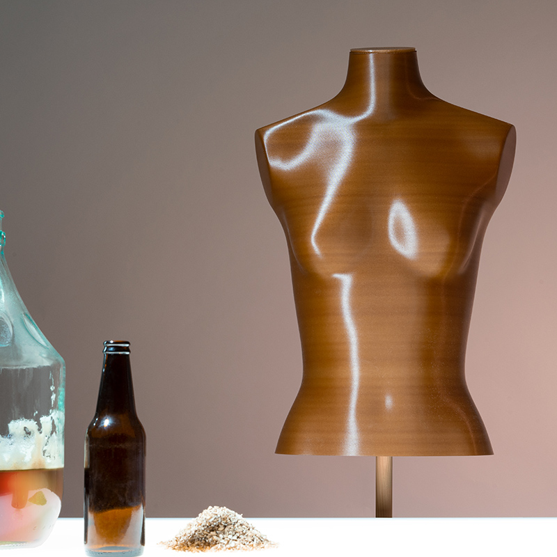 Aggiungendo il 10% di gusci d’ostrica, fondi di caffè e birra dai residui del catering abbiamo cambiato il colore del filamento per la stampa 3D.