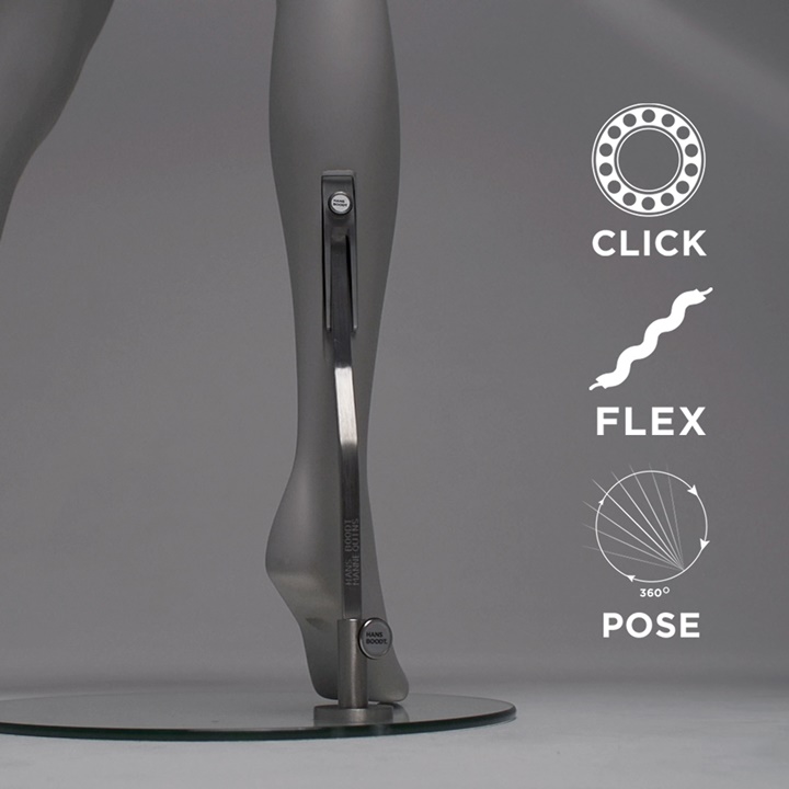 Hans Boodt Mannequins ha sviluppato una linea innovativa che garantisce maggiore usabilità e migliore qualità. Questo sistema unico è più resistente, più veloce e più semplice. Questo unico e creativo sistema di adattamento, é sviluppato da Hans Boodt Mannequins e funziona esclusivamente con i nostri manichini.