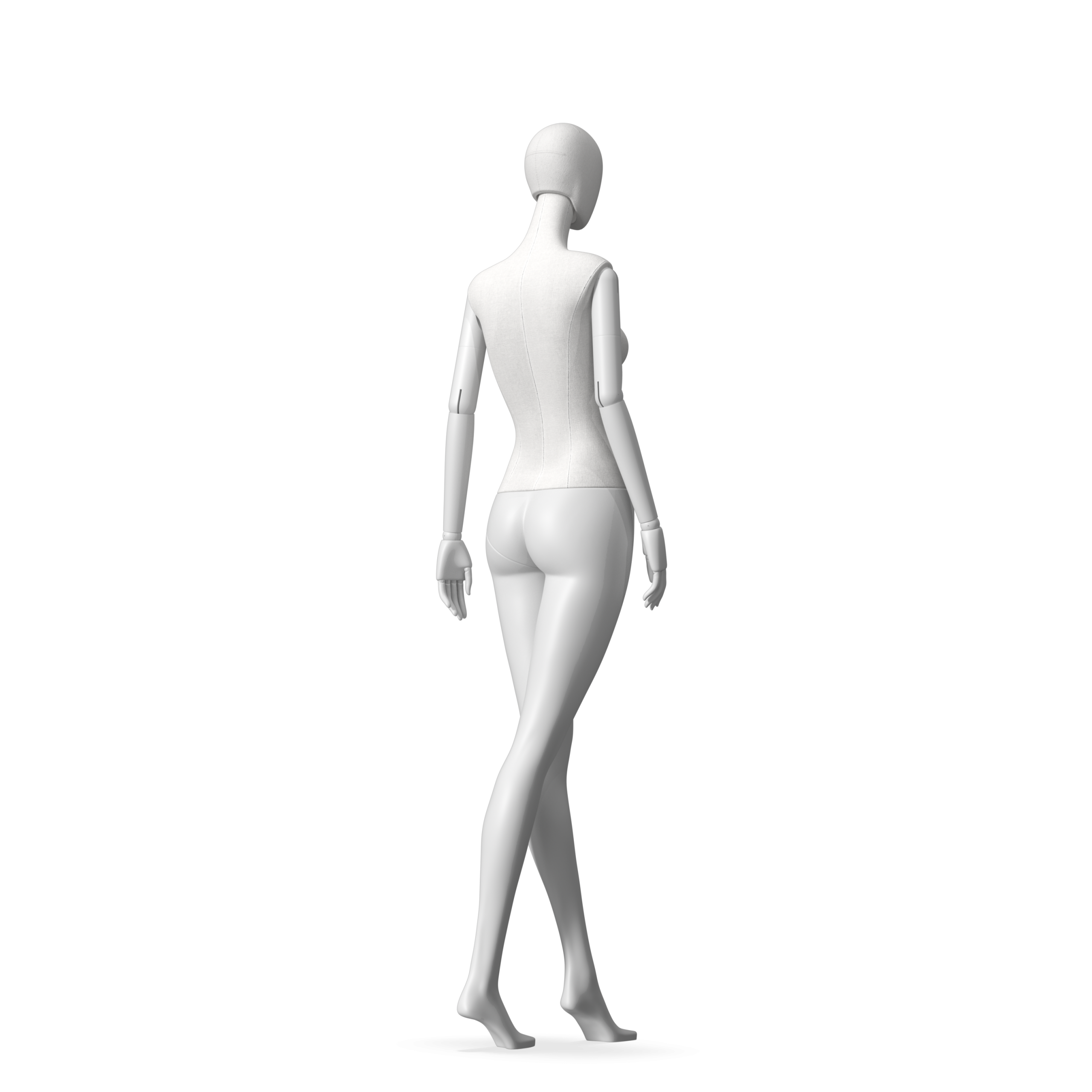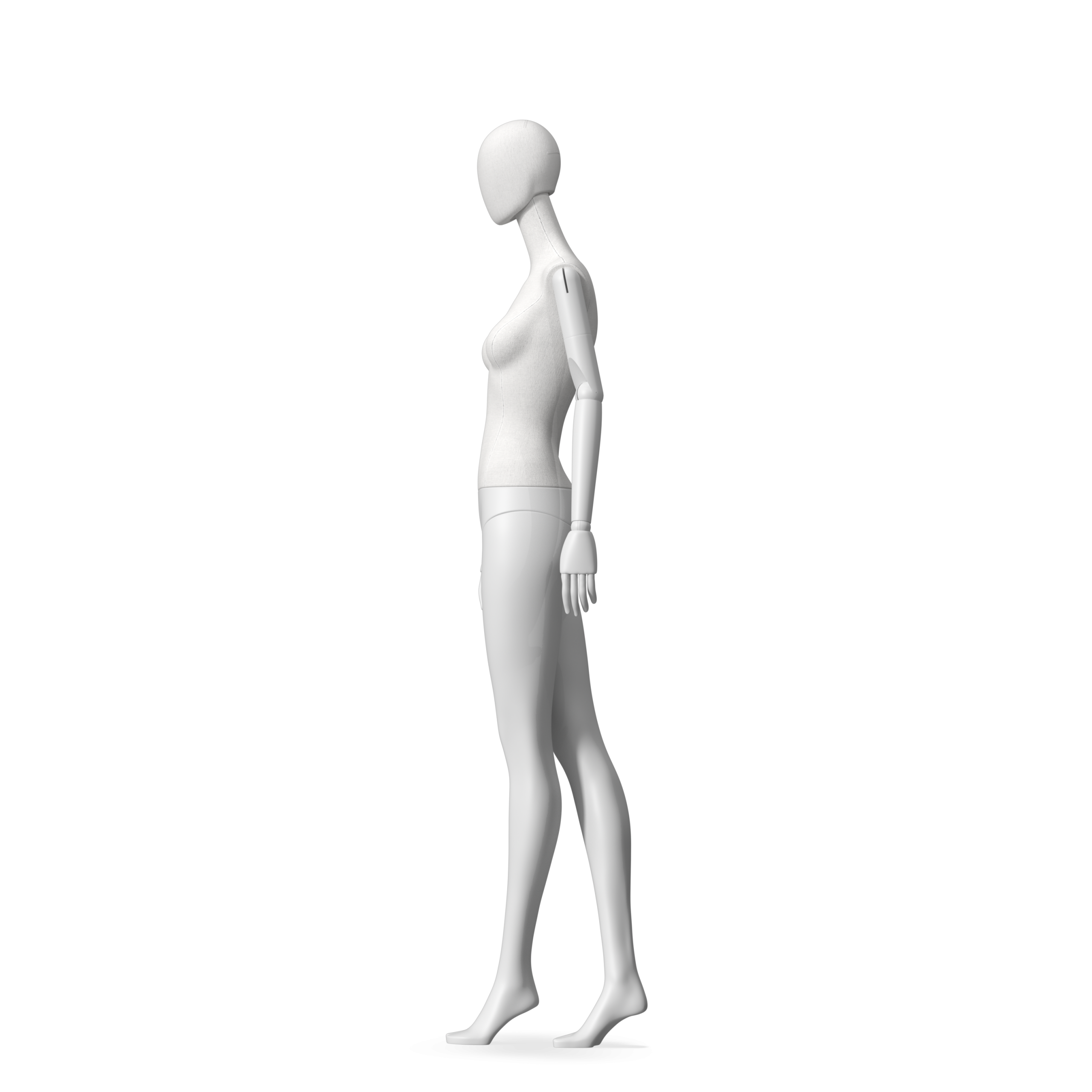 The Female Radiant Fabric is covered with fbr-amjf640 canvas linen look fabric and has C8 white matte, wooden articulated arms. She has a detachable 360˚ Egg Head with a NO-GAP design. Different head options can be ordered seperately. A 42cm Round Glass Base with a Silver Chrome Upright & Calf Pin is included.