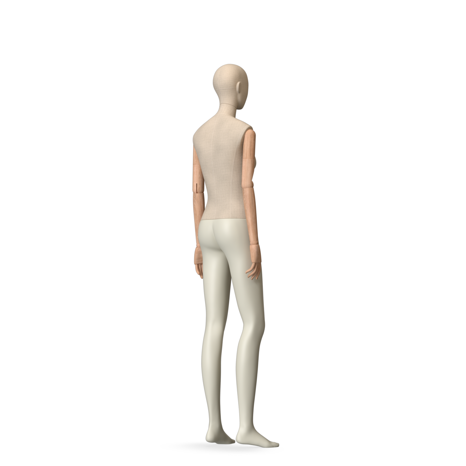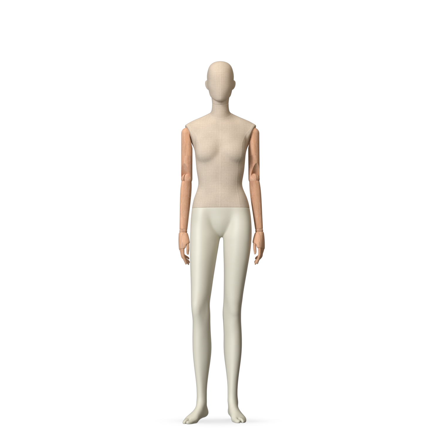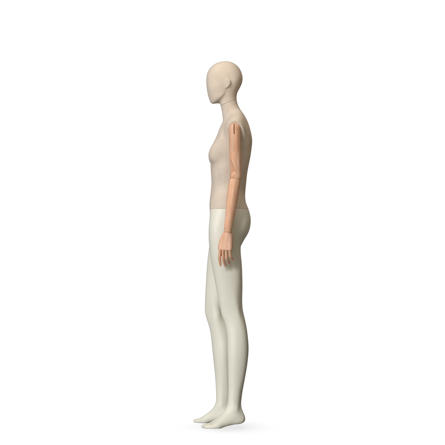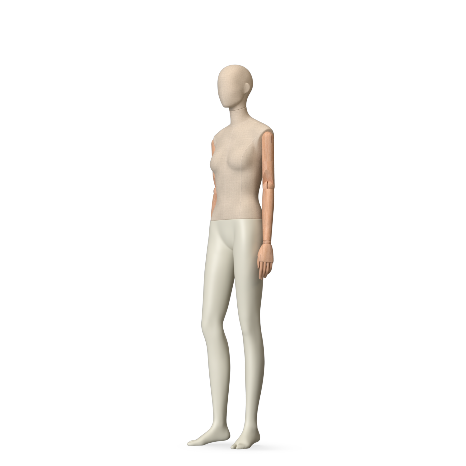 The Female Canvas Articulated has a body with Amjf 643 Canvas Linnen,Pantone 9225C matte legs and Natural Wood articulated arms with Non-Art fingers.