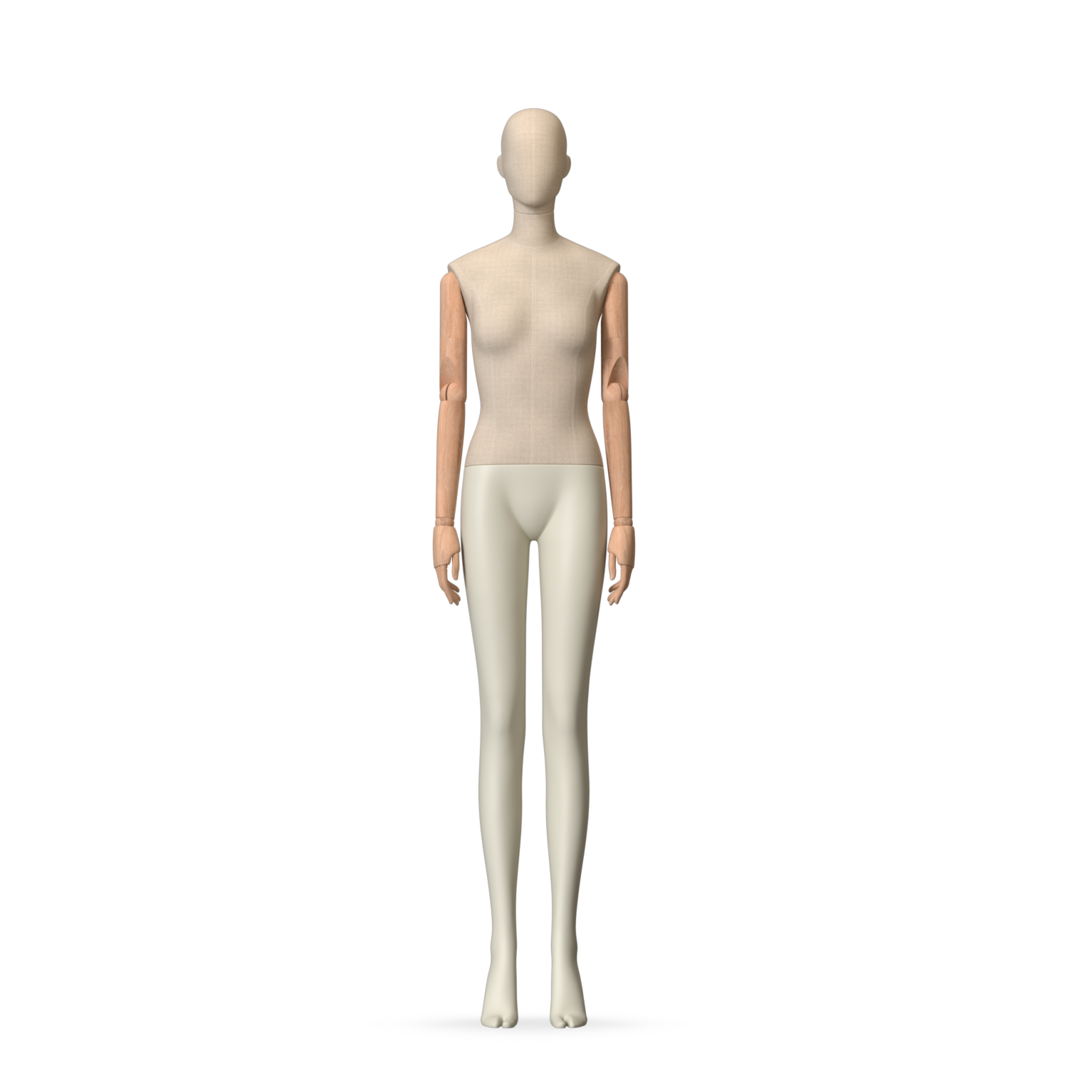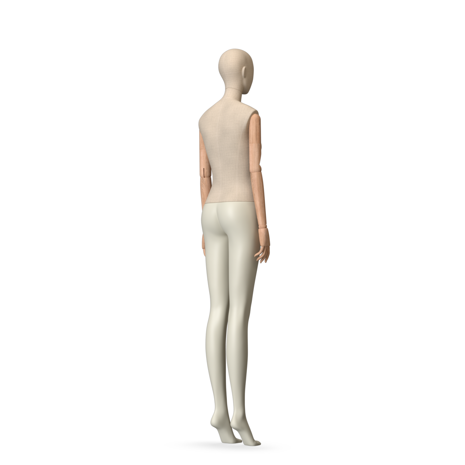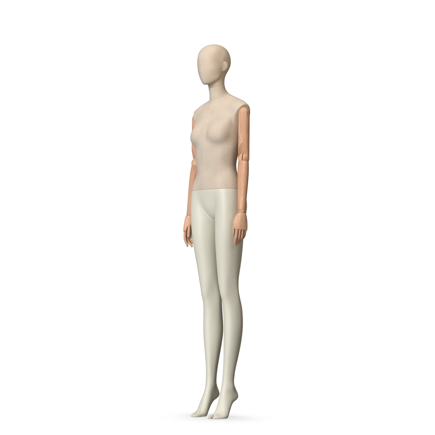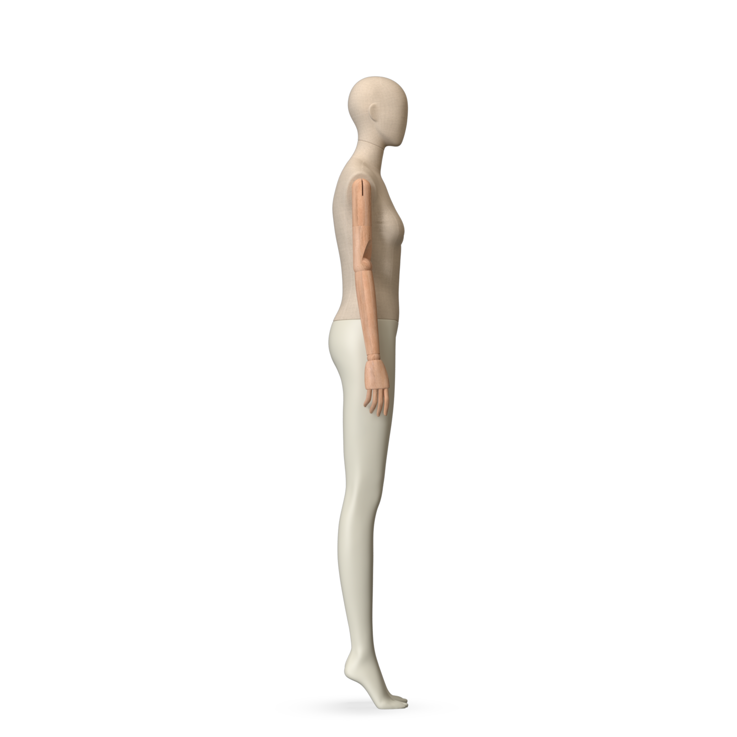 The Female Canvas Articulated has a body with Amjf 643 Canvas Linnen,Pantone 9225C matte legs and Natural Wood articulated arms with Non-Art fingers.