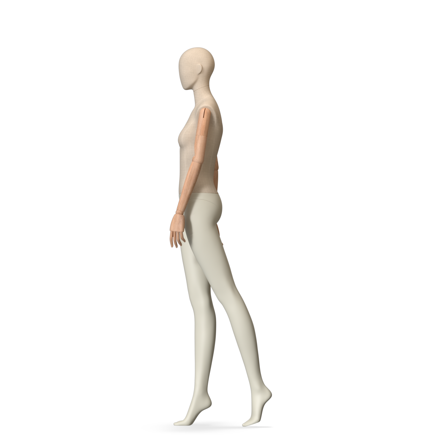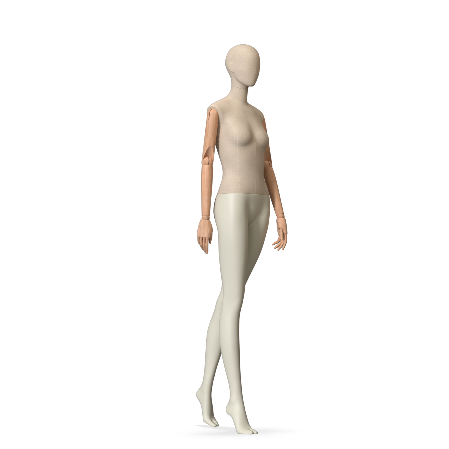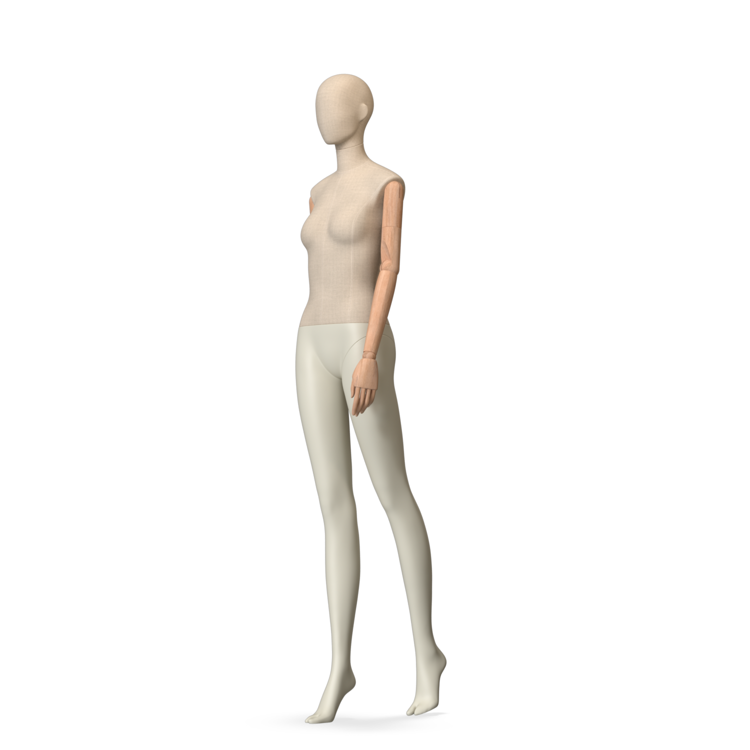 The Female Canvas Articulated has a body with Amjf 643 Canvas Linnen,Pantone 9225C matte legs and Natural Wood articulated arms with Non-Art fingers.