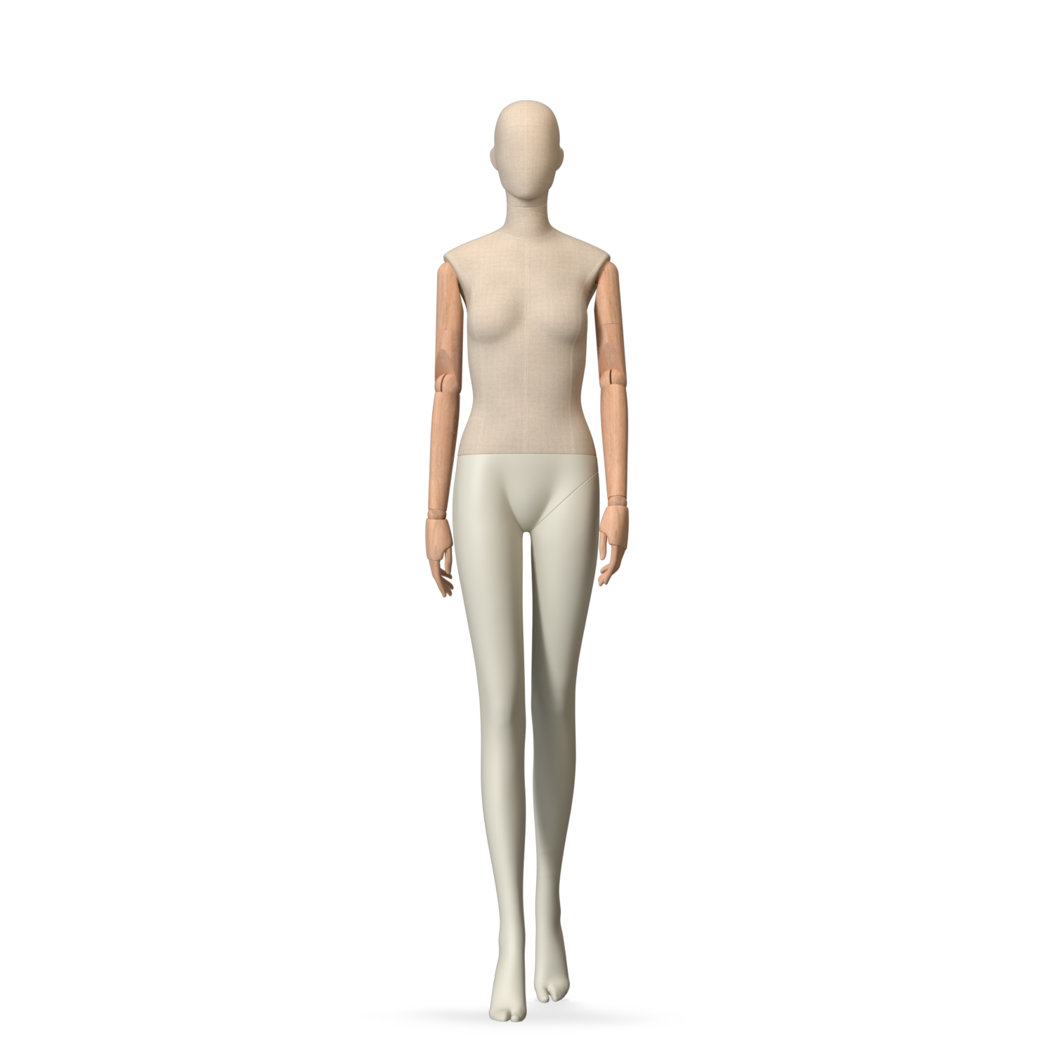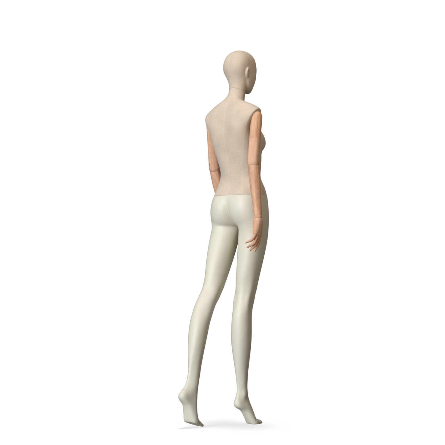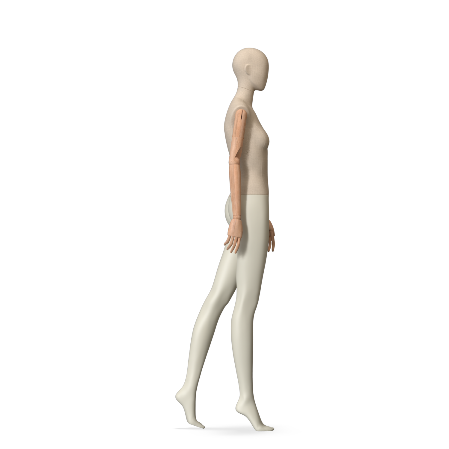 The Female Canvas Articulated has a body with Amjf 643 Canvas Linnen,Pantone 9225C matte legs and Natural Wood articulated arms with Non-Art fingers.