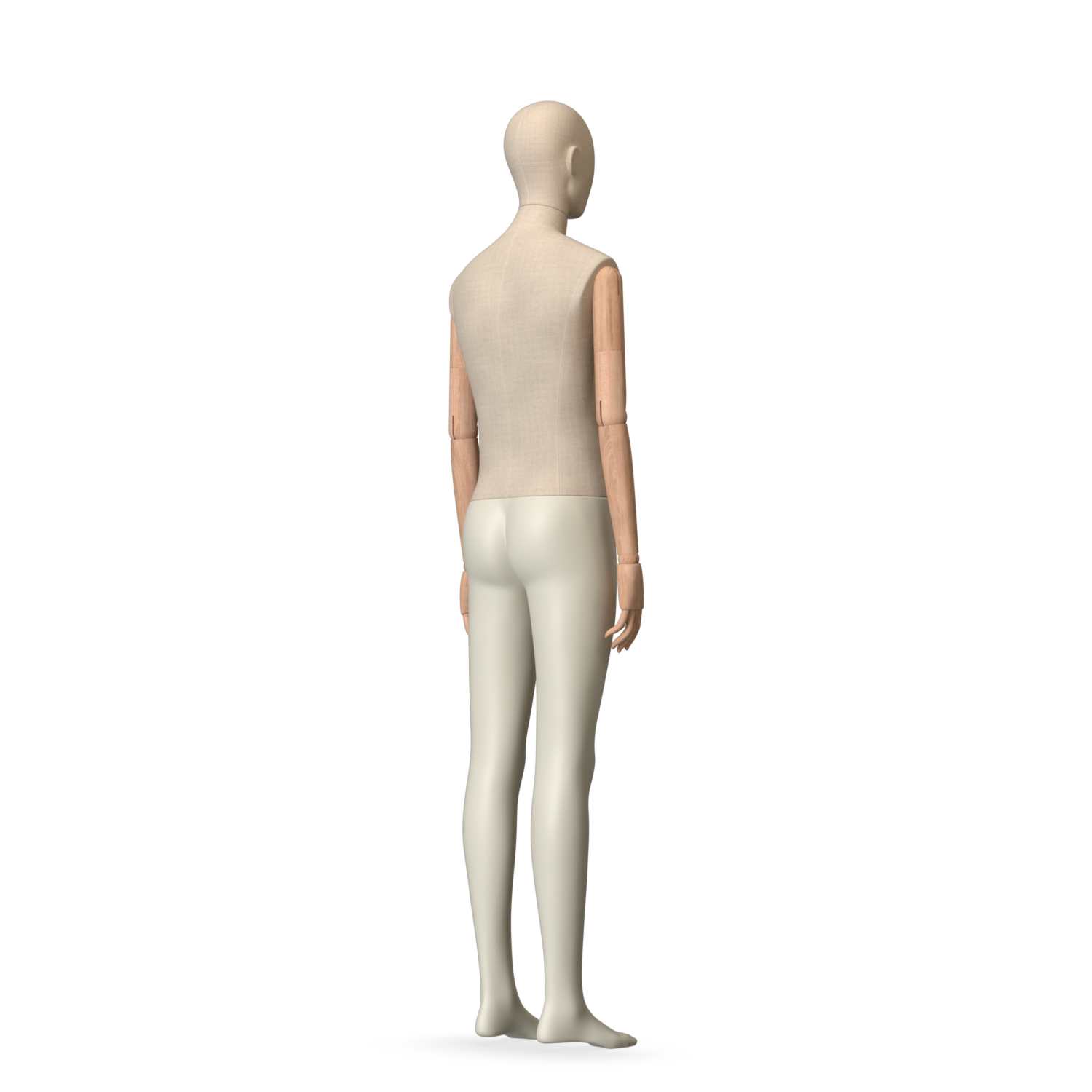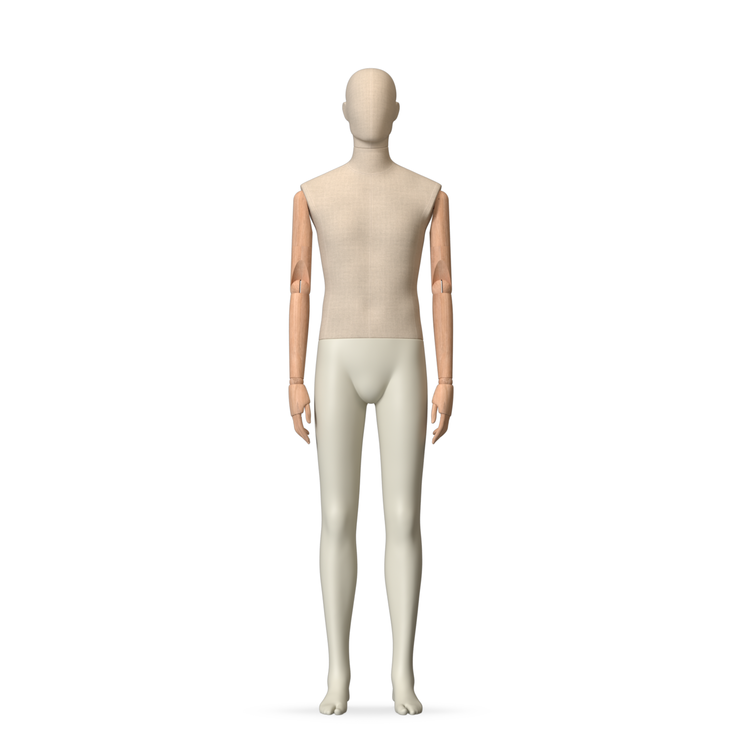 The Male Canvas Articulated has a body with Amjf 643 Canvas Linnen,Pantone 9225C matte legs and Natural Wood articulated arms with Non-Art fingers.