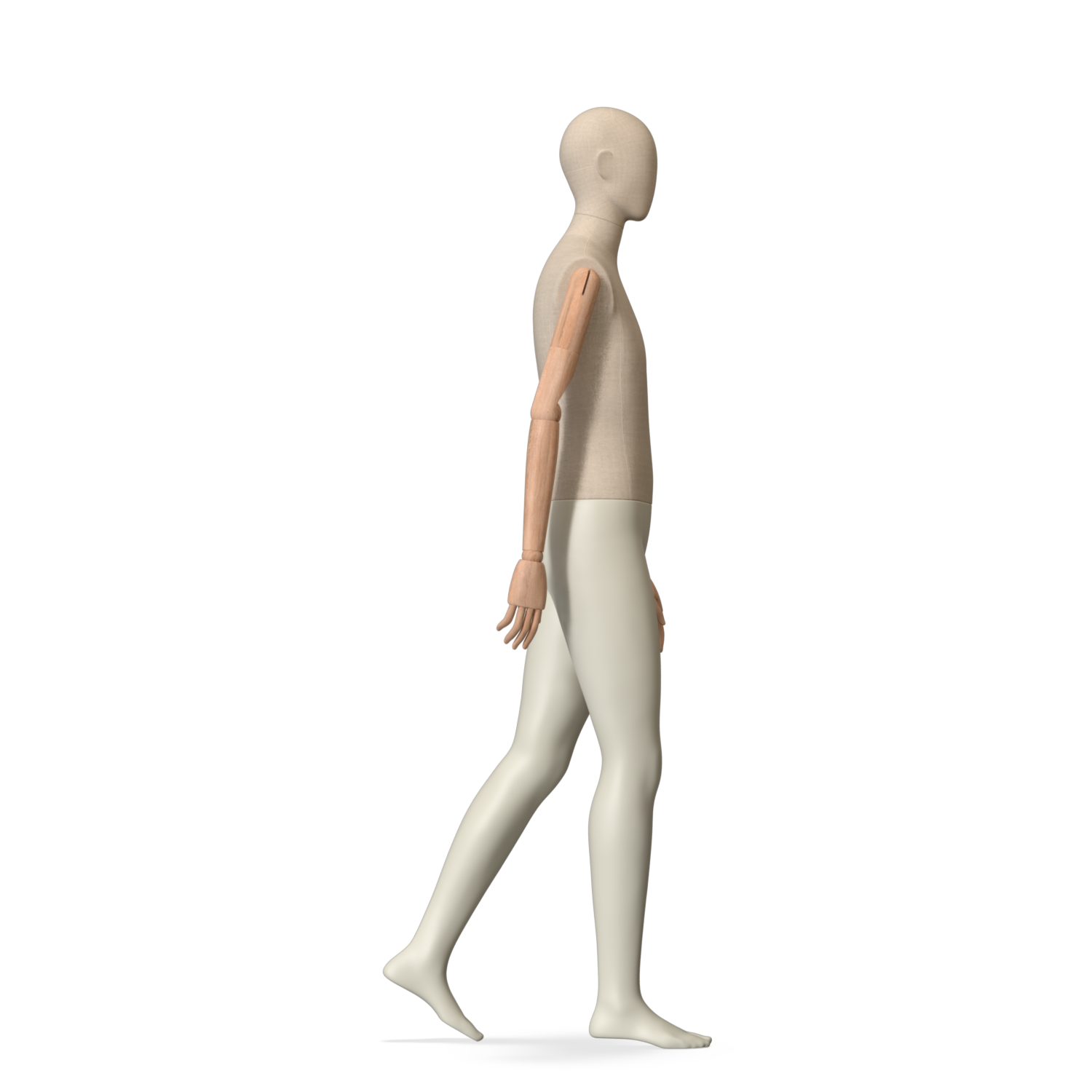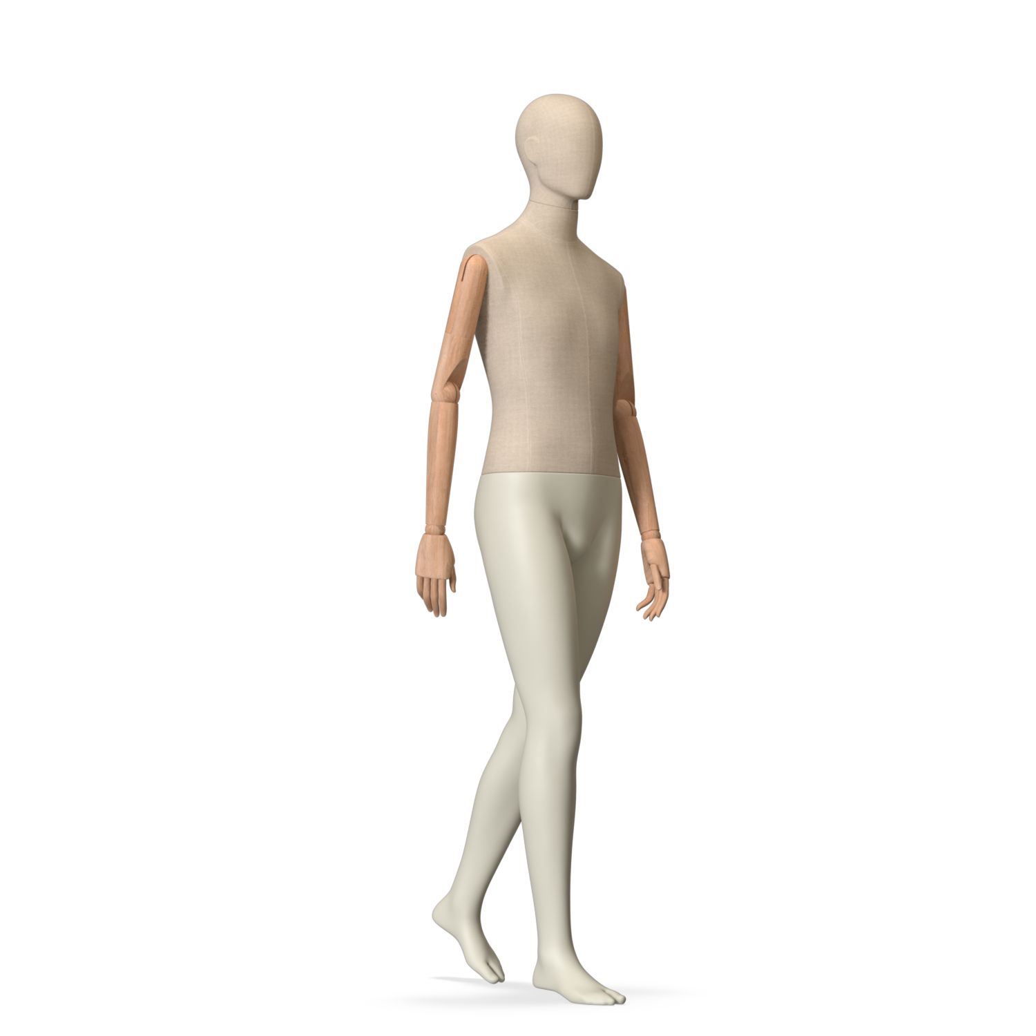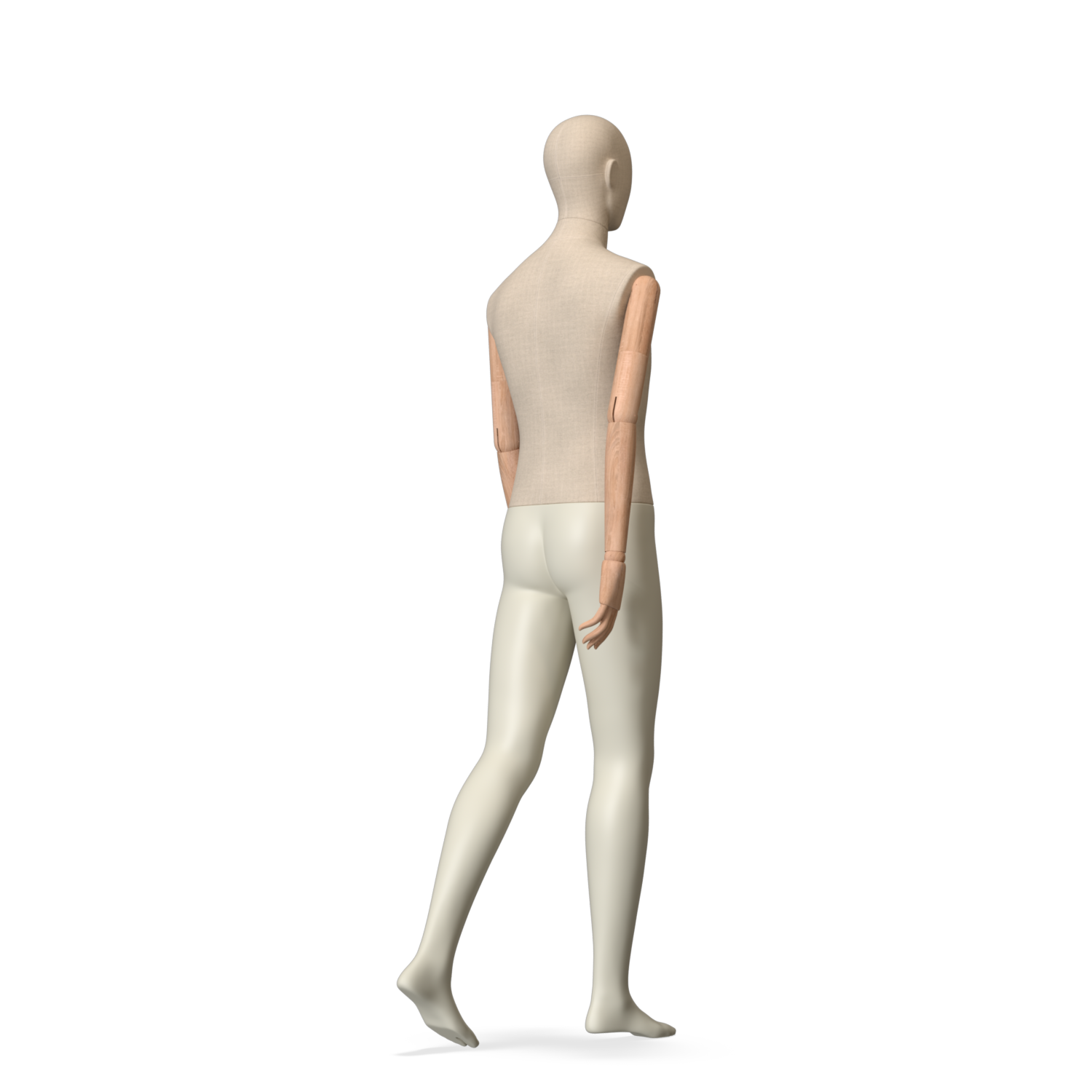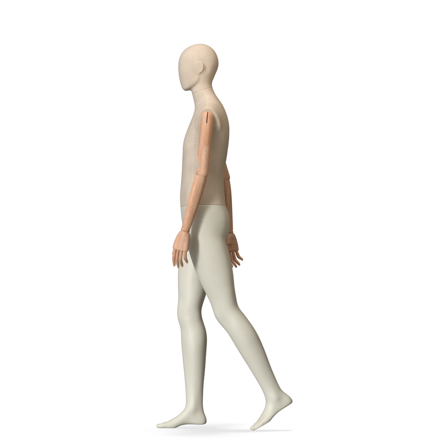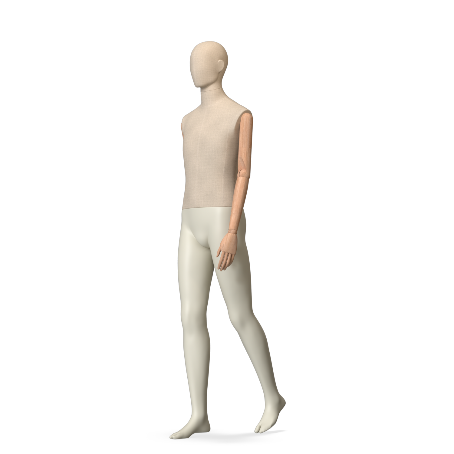 The Male Canvas Articulated has a body with Amjf 643 Canvas Linnen,Pantone 9225C matte legs and Natural Wood articulated arms with Non-Art fingers.