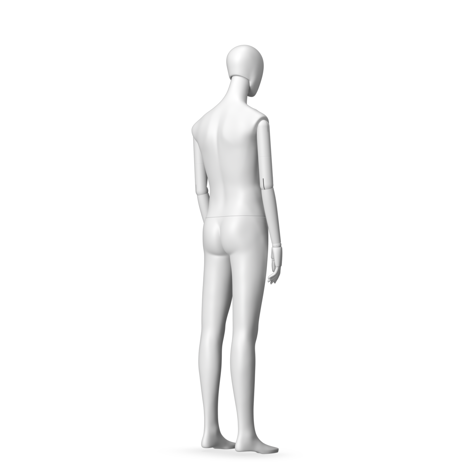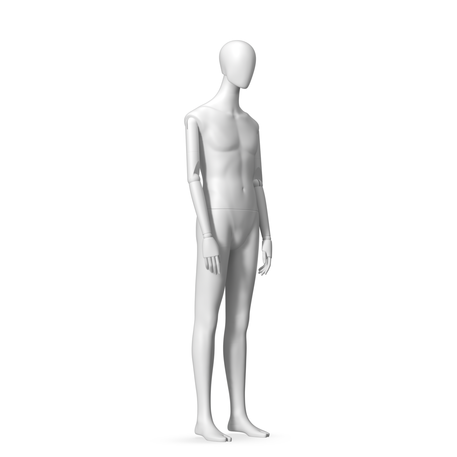 The Male Radiant Articulated is finished in C8 white matte paint, with C8 white matte, wooden articulated arms. He has a detachable 360˚ Egg Head with a NO-GAP design. Different head options can be ordered seperately. A 42cm Round Glass Base with a Silver Chrome Upright & Calf Pin is included.